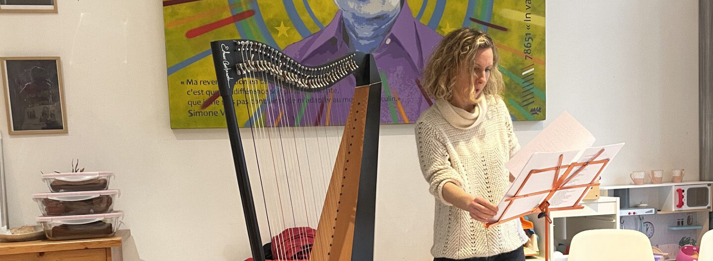 Pour cette journée symbolique, nous avons eu le plaisir d’accueillir Ségolène, harpiste de la compagnie La Filandre, venue animer un atelier artistique et un concert intimiste.
